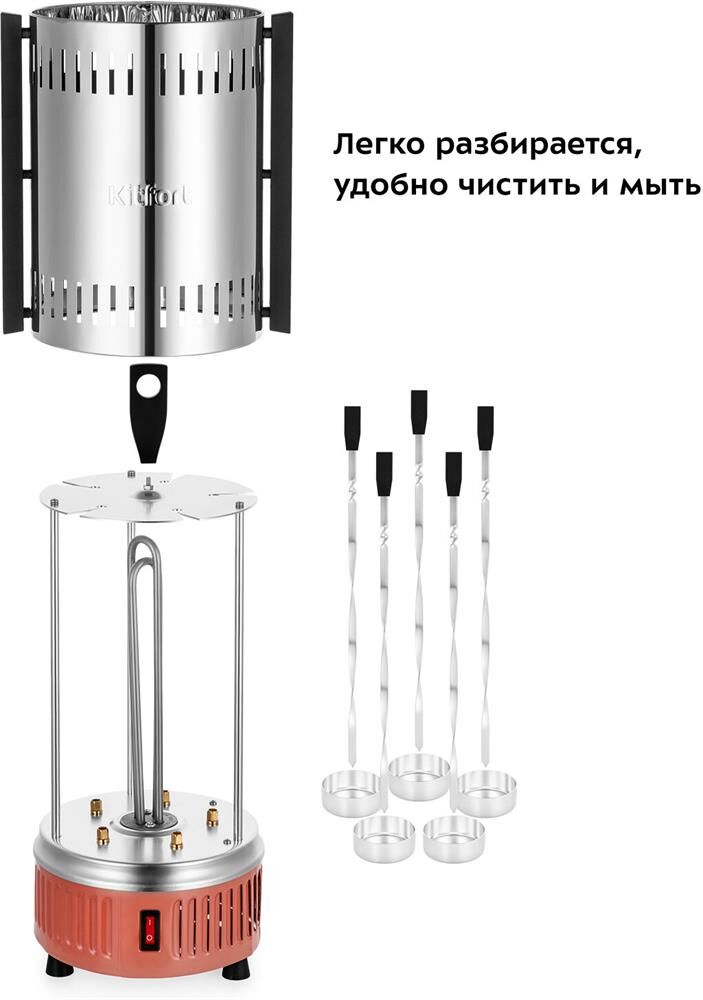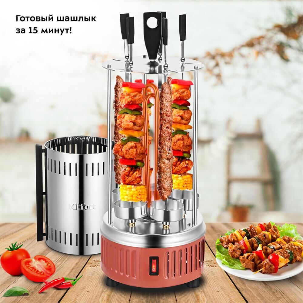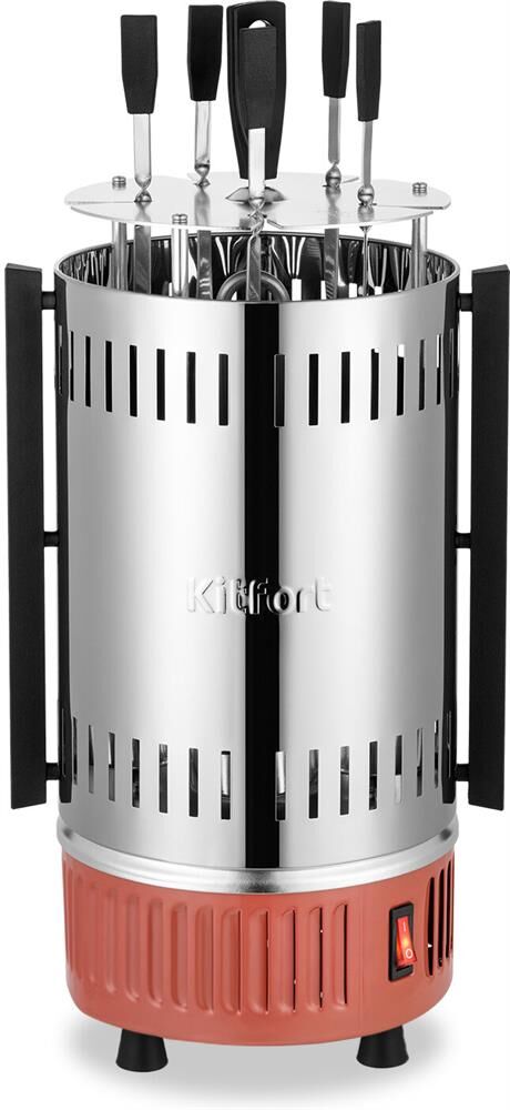 KITFORT Шашлычница электрическая КТ-1407, 900Вт, нержавеющая сталь/оранжевый