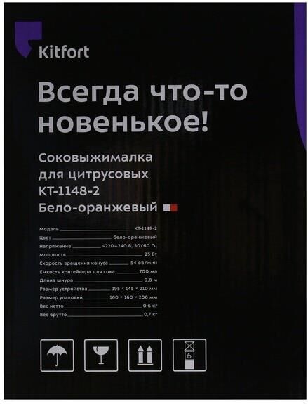 KITFORT Соковыжималка КТ-1148-2, цитрусовая, белый и оранжевый
