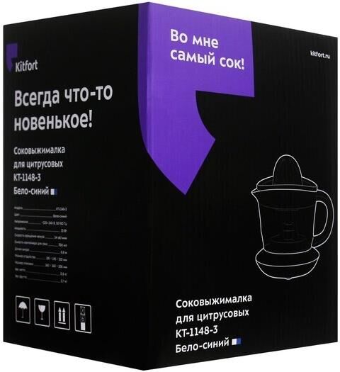 KITFORT Соковыжималка КТ-1148-3, цитрусовая, белый и синий