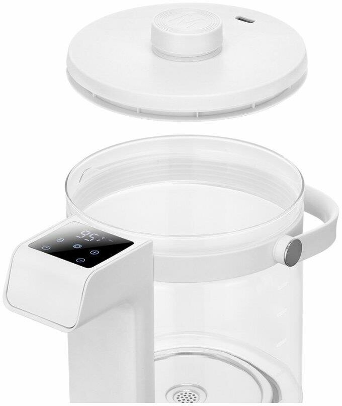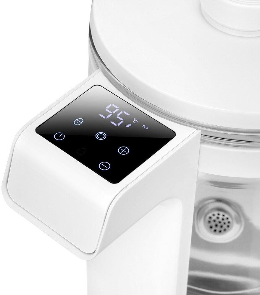 Мощность: 1500. Объем: 2.5. Количество температурных режимов: 4. Материал колбы: стекло. Тип насоса: комбинированный. Защита от перегрева: есть. Дисплей ЖК: есть. Температурные режимы: 40-95/50/75/100. Нагревательный элемент: скрытый. Блокировка включения без воды: есть. Крышка: съемная. Индикатор уровня воды: есть. Индикация включения: есть. Вращающийся корпус на 360°: да. Ручка для переноски: есть. Поддержание температуры воды: есть. Материал корпуса: пластик. Вес товара: 1.7. Длина сетевого шнура: 0.7. Габариты упаковки (ед) ДхШхВ: 0.295x0.217x0.315. Вес упаковки (ед): 2.35. Страна производства: Китай. Гарантия: 12 мес.. Размеры (ШхВхГ): 187 х 293 х 260 мм. Цвет: белый. Температурные режимы: 40-95/50/75/100 °С. Мощность: 1500 Вт. Количество температурных режимов: 4. Объем: 2.5 л. Нагревательный элемент: скрытый. Насос: комбинированный