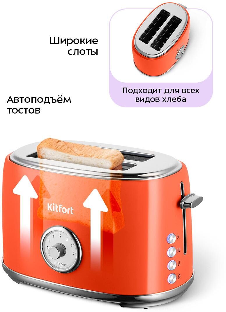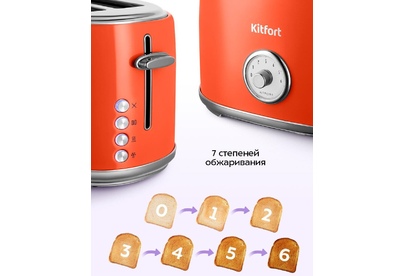 KITFORT Тостер КТ-6456 980Вт красный/серебристый