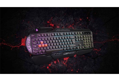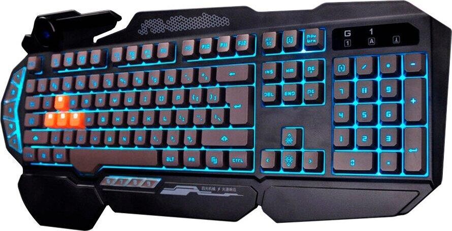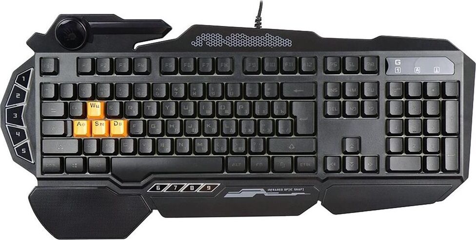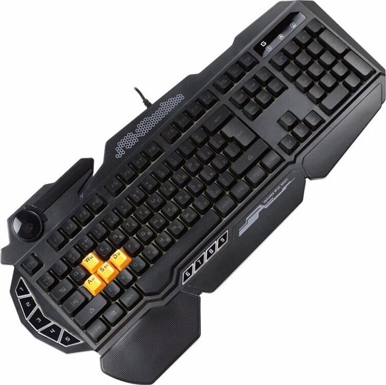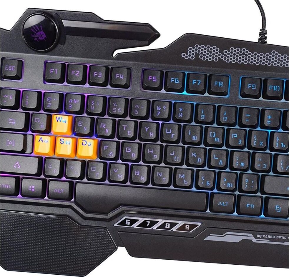 Подсветка клавиш ДА Подставка для запястий ДА Защита от попадания жидкостей ДА Особенности 5 уровней LED подсветки, тип клавиш – мембранные (частично механика), 4 силиконовых игровых клавиш, время отклика – 0.2 мс., усиленный пробел. Технология: Light Strike. Оптические переключатели: WSAD.