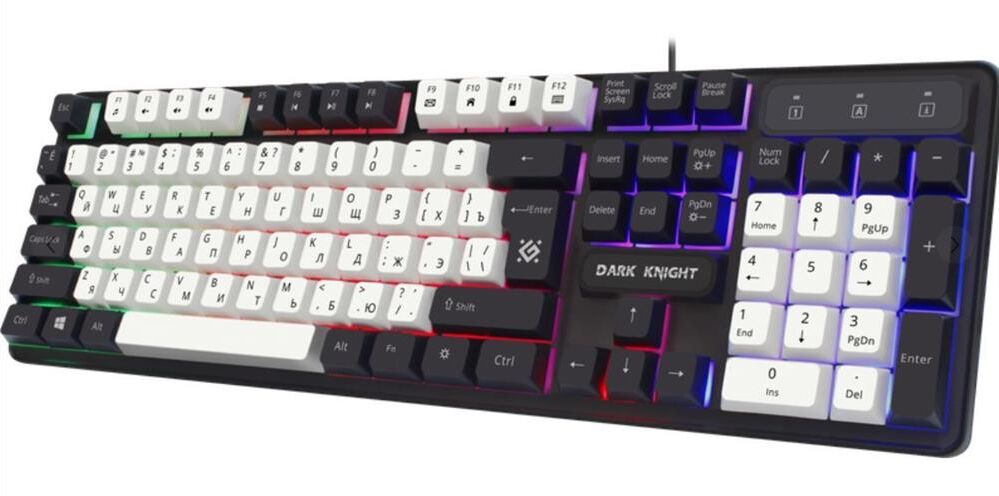 Клавиатура DEFENDER (45078) Dark Knight GK-077 RU,бел-черн