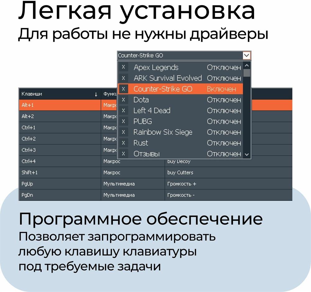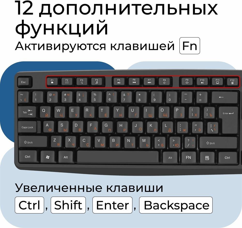 Тип подключения: проводной Интерфейс подключения: USB Длина кабеля: 1.8 ±5% м Резиновые ножки: есть Количество дополнительных клавиш (функций): 12 (+FN) Цвет языка основной раскладки: оранжевый Тип клавиатуры: мембранная Цвет: чёрный ROHS / CE: Нет Масса индивидуальной упаковки: 0.52 кг Масса без упаковки: 0.43 кг Размеры без упаковки: 12.0 x 2.3 x 43.0 см Системные требования для ПК: Windows 2000/XP/Vista/7/8/10/11 Mac OS X10 Гарантийный срок: 6 месяцев