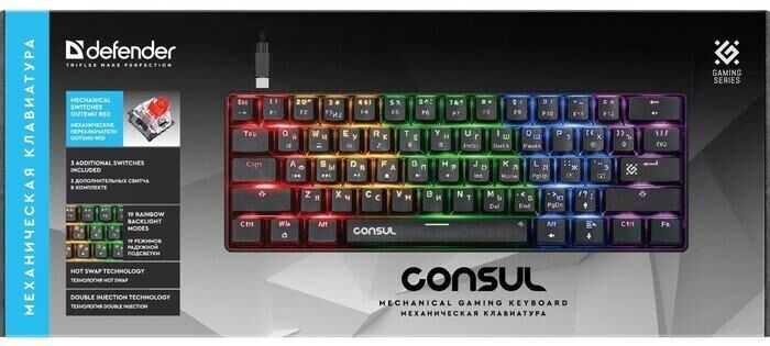 Ультракомпактная проводная механическая клавиатура на тихих красных свитчах Outemu. Ключевые достоинства модели: 19 режимов радужной подсветки, технология anti-ghost (все клавиши), возможность замены свитчей благодаря технологии Hot Swap. В комплект входят три дополнительных свитча, а также и пуллеры для кейкапов и свитчей.