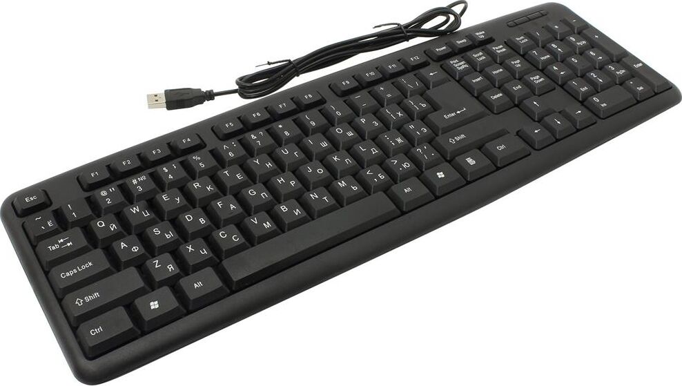 Клавиатура проводная, интерфейс подключения USB, количество дополнительных клавиш (функций) 3 клавиши управления питанием, дизайн клавиатур классический, тип клавиатуры - мембранная