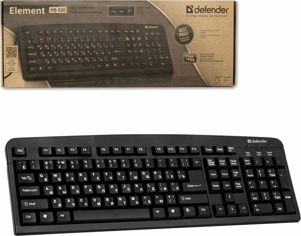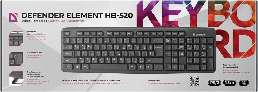 Клавиатура DEFENDER (45520) ELEMENT HB-520 PS/2 RU черный (5)
