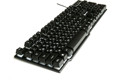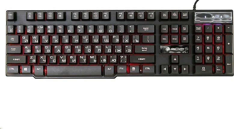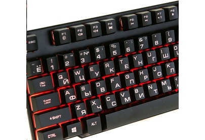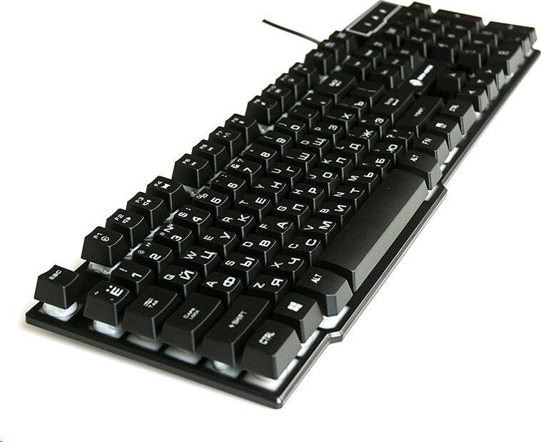 Клавиатура игровая проводная, мультимедийная, интерфейс USB, корпус черный матовый пластик, количество клавиш - 104, клавиши Windows, мультимедиа-клавиши комбинированы с F-клавишами, клавиши непрозрачные, символы просвечиваются изнутри, регулируемый угол наклона, длигна кабеля - 1,5 м.