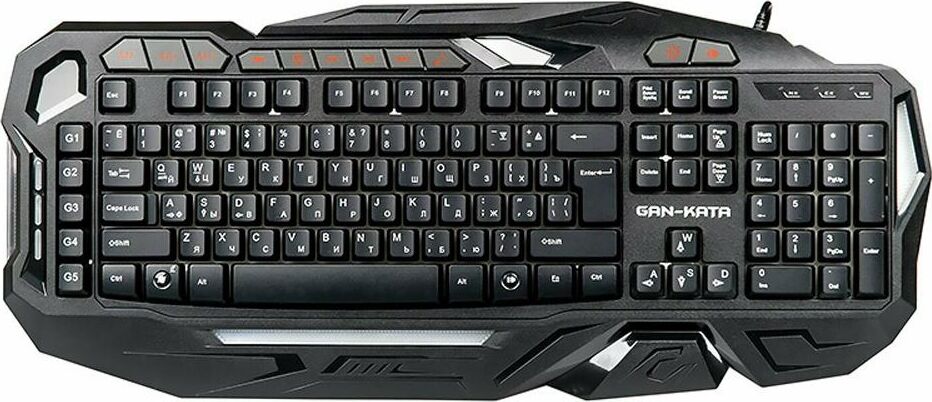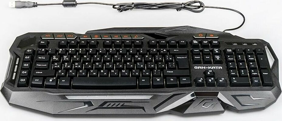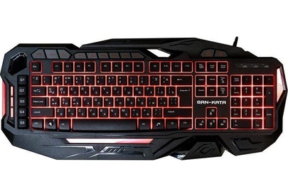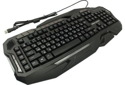 Мультимедийная игровая клавиатура с подсветкой клавиш, проводная, интерфейс - USB, корпус - черный текстурированный пластик, количество клавиш - 120, клавиши Windows, мультимедиа-клавиши - блок в верхнем ряду над F-клавишами, 3 уровня яркости подсветки, регулируемый угол наклона, кабель с ферритовым фильтром, длина кабеля - 2,0 м, габаритные размеры (В*Ш*Г, мм) - 515*215*32