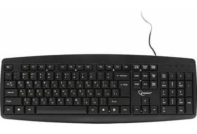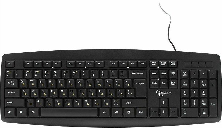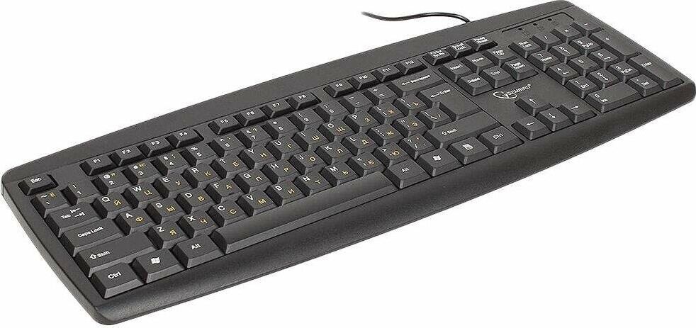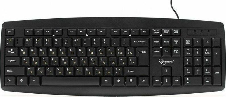 Проводная клавиатура, классическая раскладка, полноразмерная клавиша «Enter» ,модель с контрастными желтыми буквами, количество клавиш: 104 шт., интерфейс: USB, длина кабеля: 1.45 м