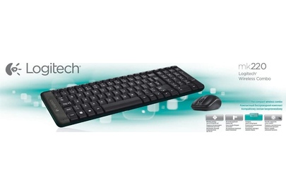 Клавиатура LOGITECH Комплект (клавиатура+мышь) MK220, USB, беспроводной, с гравировкой, черный [920-003161]