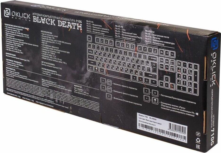 Клавиатура OKLICK 710G BLACK DEATH черный/серый