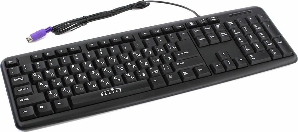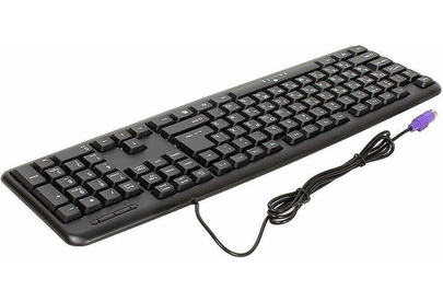 Клавиатура проводная, интерфейс PS/2, количество клавиш - 104, материал корпусапластик, длина кабеля - 1,5 м.