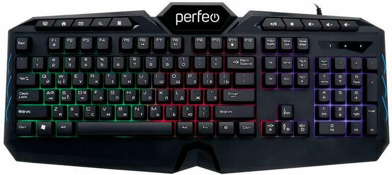 Клавиатура PERFEO (PF_B3410) VISION Multimedia, GAME DESIGN, подсв. 3 цвет USB, чёрн