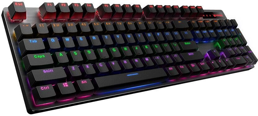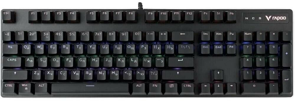 • Металлическая поверхность корпуса • Конструкция с защитой от проливания воды • Механический переключатель Rapoo с высокой скоростью срабатывания • Индивидуальная цветная подсветка с 5 настройками освещенности • Срок службы клавиш 60 миллионов нажатий • Мультимедийные горячие клавиши 12 • Подходит для опытных геймеров