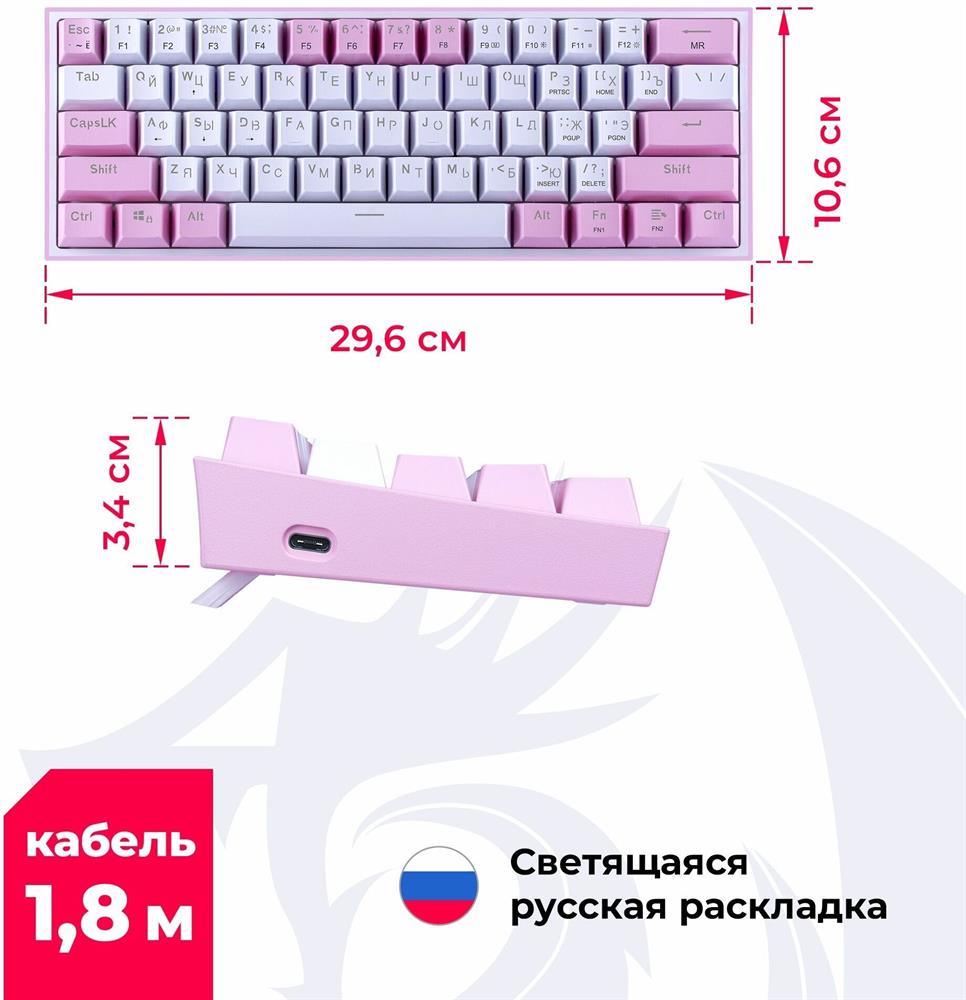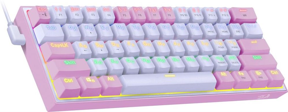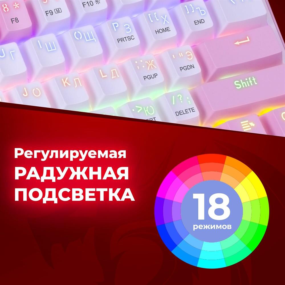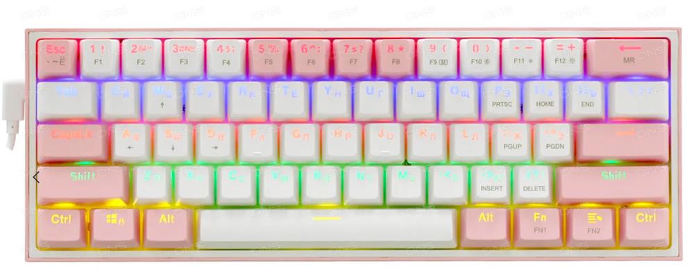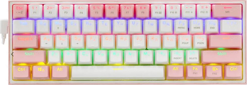 Клавиатура REDRAGON (70672) Fizz Радужн,61 клав,тих,бело-розов.