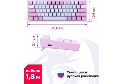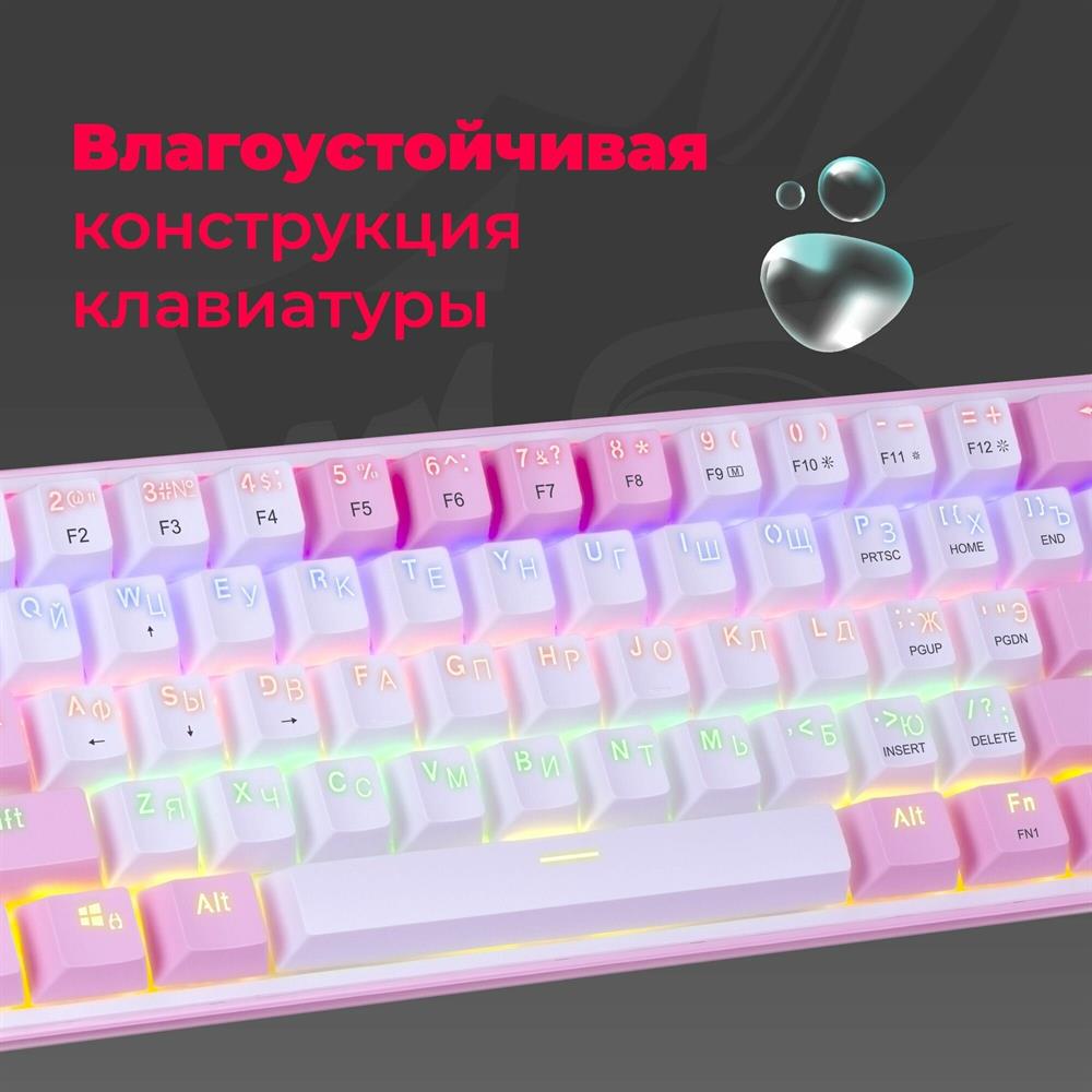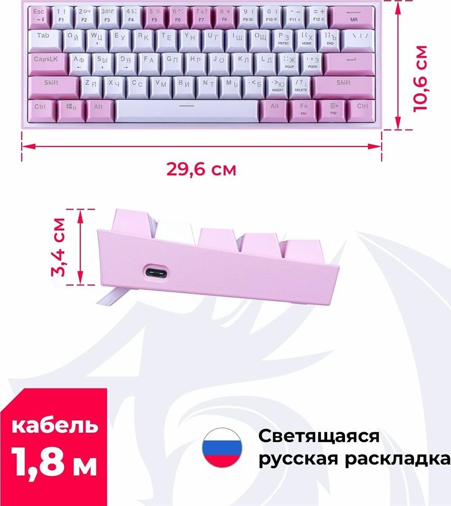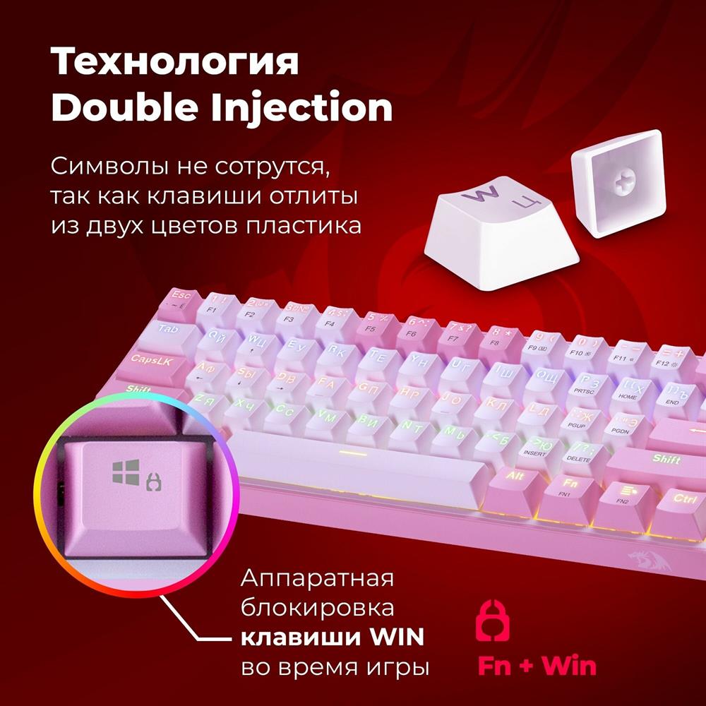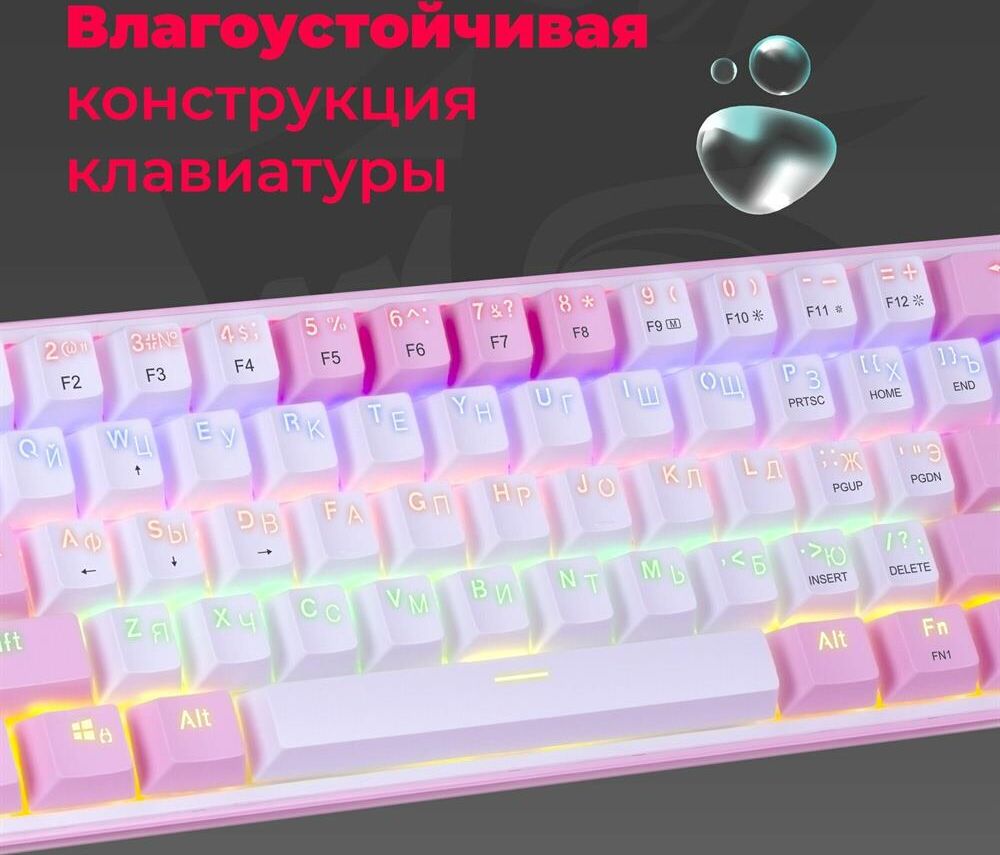 Клавиатура REDRAGON (70672) Fizz Радужн,61 клав,тих,бело-розов.