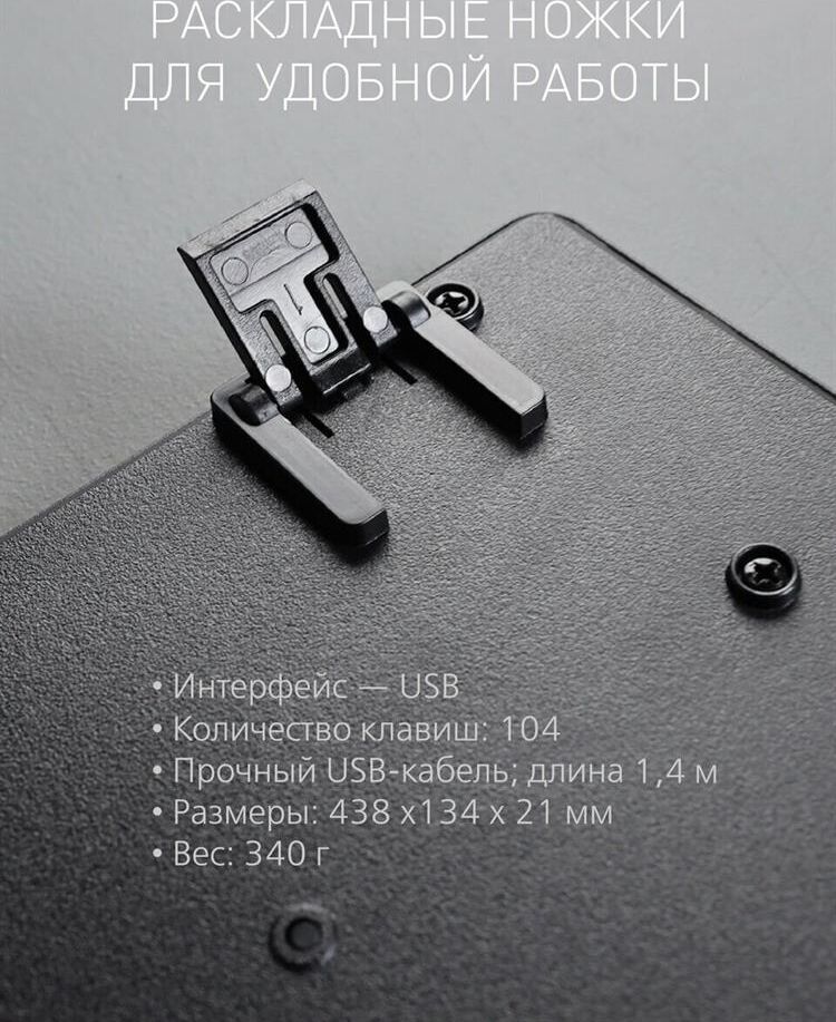 Тип Мембранная Количество клавиш 104 Дополнительный клавиши 12 (одновременно с клавишей FN) Вид дополнительных клавиш Мультимедийные Функциональные Интернет Низкопрофильные клавиши Да Индикаторы Num Lock / Scroll Lock / Caps Lock Конструктивные особенности Полноразмерная, стандартная раскладка Интерфейс подключения USB Материал корпуса Пластик Подсветка Нет Цифровой блок Да Защита от влаги Нет Бесшумное нажатие Нет Тип подключения Проводная Длина кабеля 1,4 м Системные требования Windows (98SE; 2000; XP; Vista; 7; 8; 10) Питание USB порт Размер 438*134*21 мм Вес 340 г Условия транспортировки Не требует особых условий транспортировки Срок службы 5 лет Срок гарантии 12 мес Тип упаковки Коробка Материал упаковки Картон Материал изготовления Пластик/металл