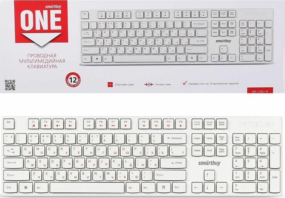 Клавиатура SMARTBUY (SBK-238U-W) ONE 238 USB, белый