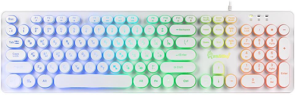 Сочетает в себе качества игровой и офисной модели: эргономичный корпус, мембранные клавиши. Клавиатура идеально подходит для быстрого набора текста. Увеличенное расстояние между клавишами позволяет легко очищать устройство от пыли и грязи. 3 режима многоцветной подсветки с опцией настройки яркости и отключения, а также выбор между постоянной и мерцающей подсветкой. Мультимедийные клавиши позволяют регулировать громкость и управлять воспроизведением музыки. Увеличенный до 10 млн ресурс нажатий. Питание USB
