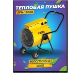 Тепловая электрическая пушка РЕСАНТА ТЭП-15000К Круглая Мощность, Вт - 15000; Площадь обогрева, м2 - 150; Напряжение сети, В - 380; Гарантия, Мес - 12; Страна бренда - Латвия