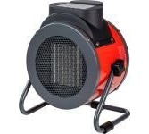 Тепловая пушка, мощность нагрева 3,0/1,8/0 кВт, керамический нагревательный элемент (PTC), производительность 250 м3/ч, 220В, 50Гц, размеры прибора (ШхВхГ) 205х205х195 мм, вес 2,1кг.