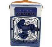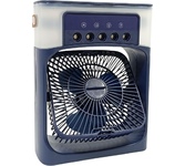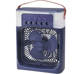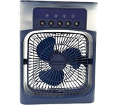 Настольный вентилятор с функцией увлажнителя и таймером выключения Диаметр: 15 см Мощность: 10 Вт 3 скорости Объём: 600 мл 3 режима распыления воды 7 цветов подсветки Встроенный таймер Отсек для аромамасел USB(Туре-С) Цвет СИНИЙ Размер упаковки: 34,5*22*38см Сеть: 5В,2А
