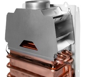 Флагманская серия газовых водонагревателей Royce, в конструкцию которых положены самые передовые технологии, обладает высокой производительностью и долговечностью. Приборы оснащены удобным и безопасным электронным розжигом, а также информативным современным цифровым дисплеем, который отображает температуру нагрева воды, заряд батареи и индикацию пламени на горелке. Усиленный теплообменник из бескислородной меди, с обратным потоком, европейский тип горелки, увеличенный газоводяной узел - все это делает прибор максимально надежным и экономичным в эксплуатации. А 4-уровневая система защиты обеспечивает безопасную работу устройства. Особенности: BURNOUT PROTECTION. Теплообменник, усиленный от прогорания и протечек В данной модели установлен теплообменник по технологии BURNOUT PROTECTION, максимально усиленный в местах, подверженных тепловому и абразивному воздействию. Это повышает надежность и долговечность прибора. Диаметр трубок нагрева и толщина стенок здесь на 40 % больше, чем в классической версии. Горелка е