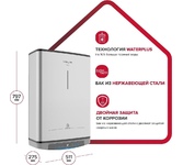Электрические водонагреватели плоской формы с двойным эмалированным внутренним баком с последовательным соединением, оснащены двумя титановыми ТЭНами мощностью 1,5 кВт каждый (3 кВт суммарно). В каждом баке установлен отдельный увеличенный магниевый анод, повышающий долговечность использования водонагревателя. Возможность подключения к системе умный дом EVO, управление с помощью Wi-Fi, Яндекс-Алисы и сенсорная установка температуры нагрева на дисплее позволяют точно настроить необходимый режим и температуру горячей воды, а так же задавать расписание работы ЭВН. Возможность выбора режима работы ЕСО / МАХ / BPS. Электробезопасность водонагревателей обеспечивает запатентованная технология Shock Proof, которая гарантированно снижает напряжение в случае утечки тока. Характеристики: Номинальное напряжение: 220 В Номинальная частота (Гц): 50 Гц Максимальная температура нагрева воды: 80°C Класс водонепроницаемости: IPX4 Объем емкости для воды: 50 л Метод управления: Электронное + Wi-Fi Подключение воды R": 1/2" Кол-в