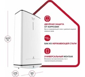 Материал нагревательного элемента InoxDryHeat Параметры сети, В/А 230 Материал корпусаметаллический Режимы работыEco / Optimal /Turbo Тип водонагревателя накопительный Форм-фактор Плоский Литраж, л 50 Способ нагрева электрический Макс. мощность электрическая, Вт 3000 Режимы мощности электрической, Вт 1000/2000/3000 Подключение к стандартной розетке да Установка вертикальная / горизонтальная Подводка нижняя / боковая Способ крепления настенный Тип управления электронное Количество внутренних баков 2 Материал внутреннего бака нержавеющая сталь Сухой ТЭН да Количество анодов 1 Анодэлектронный Количество нагревательных элементов2 Время нагрева на ?t 45° при макс. мощности, мин 43 Постоянные суточные потери, кВт?ч/сут0.9 Фактическое годовое потребление эл. энергии, кВт?ч328 Макс. давление воды, МПа0.7 Мин. давление воды, МПа 0.05 Макс. температура нагрева воды, °С 80 Ускоренный нагрев да Тип электрического нагревательного элементатрубчатый Точки водоразбора несколько Класс IP IPX4 УЗО да Режим предотвращения замер