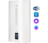 Электрические водонагреватели плоской формы с двойным эмалированным внутренним баком с последовательным соединением, оснащены двумя титановыми ТЭНами мощностью 1,5 кВт каждый (3 кВт суммарно). В каждом баке установлен отдельный увеличенный магниевый анод, повышающий долговечность использования водонагревателя. Возможность подключения к системе умный дом EVO, управление с помощью Wi-Fi, Яндекс-Алисы и сенсорная установка температуры нагрева на дисплее позволяют точно настроить необходимый режим и температуру горячей воды, а так же задавать расписание работы ЭВН. Возможность выбора режима работы ЕСО / МАХ / BPS. Электробезопасность водонагревателей обеспечивает запатентованная технология Shock Proof, которая гарантированно снижает напряжение в случае утечки тока. Характеристики: Номинальное напряжение: 220 В Номинальная частота (Гц): 50 Гц Максимальная температура нагрева воды: 80°C Класс водонепроницаемости: IPX4 Объем емкости для воды: 80 л Метод управления: Электронное + Wi-Fi Подключение воды R": 1/2" Кол-в