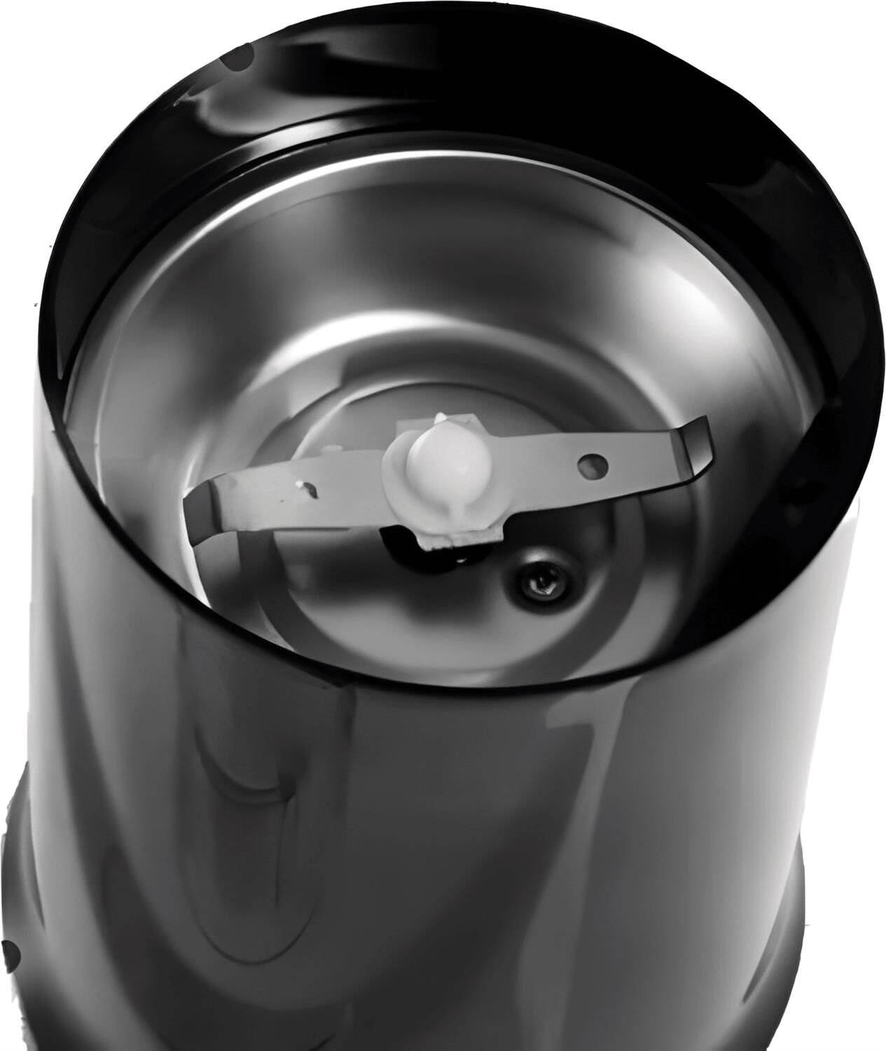 Кофемолка Мощность: 300 Вт. Объем: 70 г. Управление: механическое. Ножи из нержавеющей стали. Отсек для хранения шнура. Кнопка включения. Стильный дизайн. Сеть: 220-240 В, 50\ Гц.