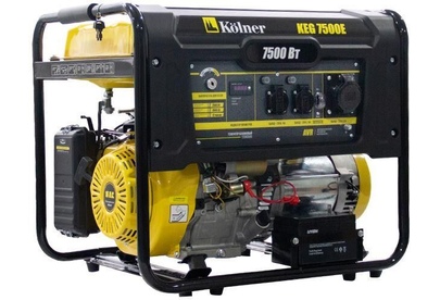 Генератор бенз. 7500/7000 Вт, 230В, 50Гц, KOLNER KEG 7500E, электрический стартер, розетки 2х16А, 1х32А, ДВС 4Т 458 см3, LCD дисплей, бак 37л, медные обмотки (штекер 2шт, ключ, отвёртка, воронка)