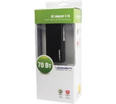 Универсальный сетевой адаптер для ноутбуков мощностью 70 ватт. В комплекте входят 11 сменных штекеров, подходящих к большинству ноутбуков. Выбор мощности для питания происходит в ручном режиме.