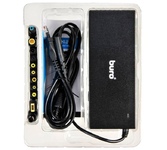 Универсальный сетевой адаптер для ноутбуков мощностью 120 ватт и USB-портом для зарядки мобильных телефонов и планшетов. В комплекте входят 11 сменных штекеров, подходящих к большинству ноутбуков. Выбор мощности для питания происходит в ручном режиме.