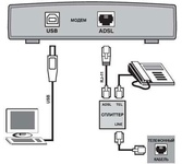 Сплиттер D-Link DSL-30CF/RS ADSL Annex A 1xRJ11 вход и 2xRJ-11 выход с 12cm телеф кабелем