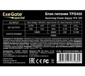 [Блок питания] Exegate EX292228RUS Блок питания 450W ExeGate TPS450 (TFX, 8cm fan, 24pin, 4+4pin, 3xSATA, 2xIDE, black) Exegate EX292228RUS Блок питания 450W ExeGate TPS450 (TFX, 8cm fan, 24pin, 4+4pin, 3xSATA, 2xIDE, black) Floppy 4-pin 1 GTD Number 10013160/110523/3212545/3 GTIN 04895205130609 Cтрана-производитель китай Molex 4 + 4 pin 1 Molex 4-pin 3 MTBF свыше 100000 часов Партномер EX292228RUS SATA 2 Вес (грамм) 850 Вес брутто (кг) - гарантия 1 год Длина кабеля (м)