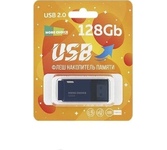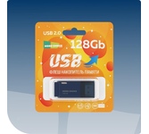 Флэш-накопитель, объем 128 Гб, закрывается пластиковым колпачком, имеет отверстие для прикрепления шнурка или брелка, скорость чтения - 15 Мб/с, записи - 6 Мб/с, интерфейс USB-A 2.0.