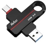 Флешка USB Netac US18 (NT03US18C-064G-32BK), 64Gb, USB 3.2/TypeC, R/W 200/100, черный/красный