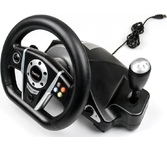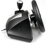 Джойстик-руль, с эффектом вибрации, интерфейс USB, двухпозиционный рычаг переключения скоростей. На рулевом колесе: 2 подрулевых лепестка для переключения скоростей, 8-позиционная навигационная крестовина, 4-кнопочная крестовина управления, 7 кнопок в центре, 2 кнопки в верхней части рулевого колеса.