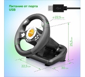 Игровой руль для ПК / PS / Xbox / Nintendo Компактный размер - Мини-руль идеально подходит для маленьких детей. Кроме того, не всегда крупный руль уместен в небольших комнатах, где порой его просто негде разместить Эффект вибрации - Делает аварии и столкновения более реалистичными (игра должна поддерживать функцию вибрации игрового контроллера) 10 кнопок Два подрулевых переключателя 8-позиционный переключатель видов Надежное крепление к столу - Руль надежно крепится к столешнице при помощи струбцин Прорезиненное покрытие руля Удобные педали Питание от порта USB Важно: возможна работа с консолями PS4, XBOX ONE, XBOX Series X/S только при подключении оригинального геймпада соответствующей консоли через провод к соответствующему USB разъему руля