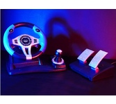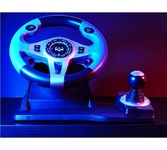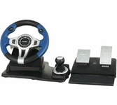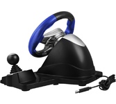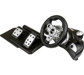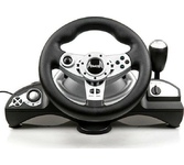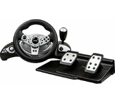 Джойстик-руль, с эффектом вибрации, интерфейс USB, трехпозиционный рычаг переключения скоростей. На рулевом колесе: 2 подрулевых лепестка для переключения скоростей, аналоговый стик, 4-кнопочная крестовина управления, крупная кнопка в центре, 2 кнопки Select и Start, четырехкнопочная крестовина в левой части рулевого блока, регулятор чувствительности в правой части рулевого блока.