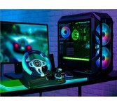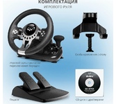 Проводной игровой руль с эффектом вибрации, удобными педалями и рычагом переключения передач. Поддерживаемые платформы: PlayStation® 3, PlayStation® 4, Android 5.0 и выше, Android TV box, XBOX 360, Nintendo Switch, XBOX One, Xbox Series X/S , ПК (Dinput и Xinput). Руль надежно крепится к столешнице при помощи струбцин.