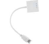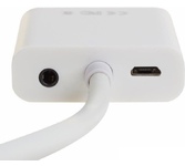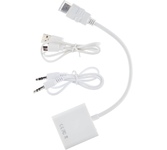 Адаптер преобразует видео+аудио сигнал с разъема HDMI в аналоговый VGA + 3.5mm аудио. Так как многие современные устройства производят уже только с выходом HDMI, отказавшись от устаревших интерфейсов передачи аудио и видео контента, и часто бывает, что мы не в силах участвовать в этой гонке за электронными новшествами то приходиться искать пути решения из данной ситуации. Таким и является переходник HDMI, ведь он позволит отобразить и проиграть видео от устройства с HDMI выходом на любой монитор, телевизор или экран старого образца, имеющий разъем VGA и 3.5mm аудио jack. Поддерживает аналоговый видео выход до UXGA и 1080p. В комплекте: - Аудио кабель 3,5 мм - Кабель питания штекер USB (Male)- штекер Micro USB (Male) Цвет: белый