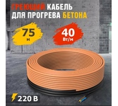 Двухжильный резистивный кабель, мощностью 40 Вт на метр, предназначен для эффективного и равномерного застывания бетона и железобетона при низких температурах. Мощность: 40 Вт/пог. м Степень защиты: IP67 Длина: 75 м Напряжение тока: 220 В Сопротивление изоляции: 103 Мом*м Диаметр нагревательного кабеля: 5-7 мм Длина силового провода: 2 м