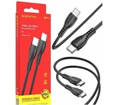 Дата-кабель Borofone BX51 Type-C to Type-C имеет наружный материал- ПВХ. С подходящим зарядным устройством PD он поддерживает зарядную мощность до 60 Вт для ноутбуков, а зарядка мобильного устройства с интерфейсом Type-C поддерживает ток 3А.