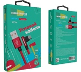 Дата-кабель K27m угловой USB 2,1A, предначен для зарядки и передачи данных между портативным устройствои и персональным компьютером через USB порт. Односторонний изгиб кабеля позволяет использовать кабель в труднодоступных местах. Наружное покрытие: нейлон, Материал коннектора: металл, Спецификация медной проволоки:40/0,08*2С+10/0,08*2С, Комплектация: дата кабель, держатель для кабеля, буклет. Длина кабель 1м.