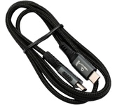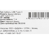 Кабель предназначен для зарядки электронных устройств, а также их синхронизации с ПК или ноутбуками. С двух сторон изделия расположены разъемы USB-С. Кабель выполнен из нейлонового плетеного провода высокой плотности, что защищает от перегибов и заломов. Цвет – черный. Кабель поддерживает стандарт быстрой зарядки Power Delivery и имеет выходную мощность 100 Вт с силой тока 5 А. Скорость передачи данных составляет до 480 Мбит/с. Длина кабеля равна 1 м, что позволяет заряжать устройство и передавать данные на комфортном расстоянии для пользователя.