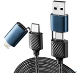 [Кабели] Rexant (18-7094) Кабель 4в1 USB-A, Type-C, Type-C, Lightning 65Вт, 1м, в черной нейлоновой оплетке