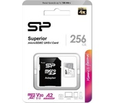 SILICON POWER Карта памяти microSDXC UHS-I U3 Superior 256 ГБ, 100 МБ/с, Class 10, SP256GBSTXDA2V20,